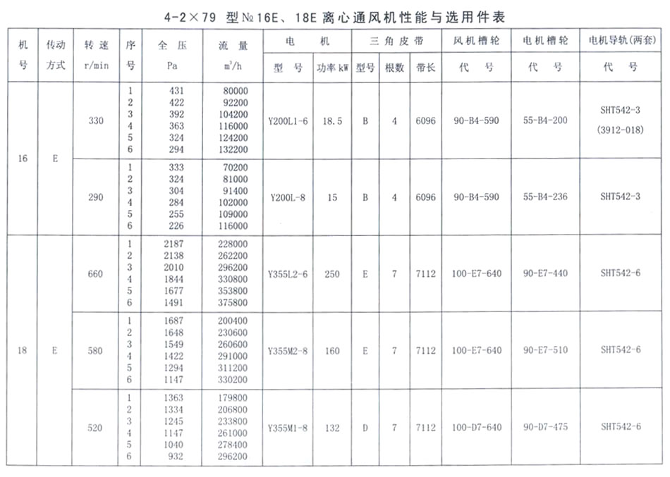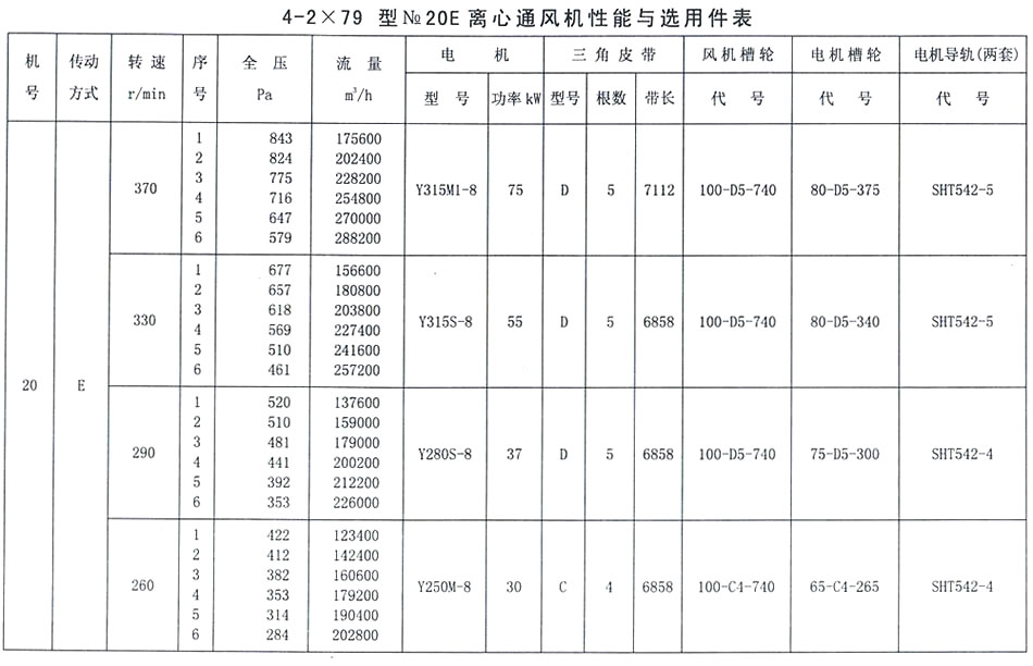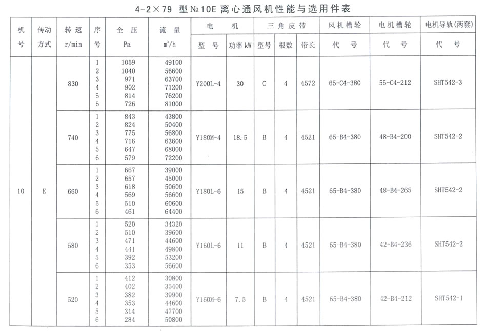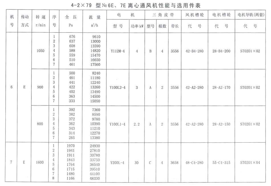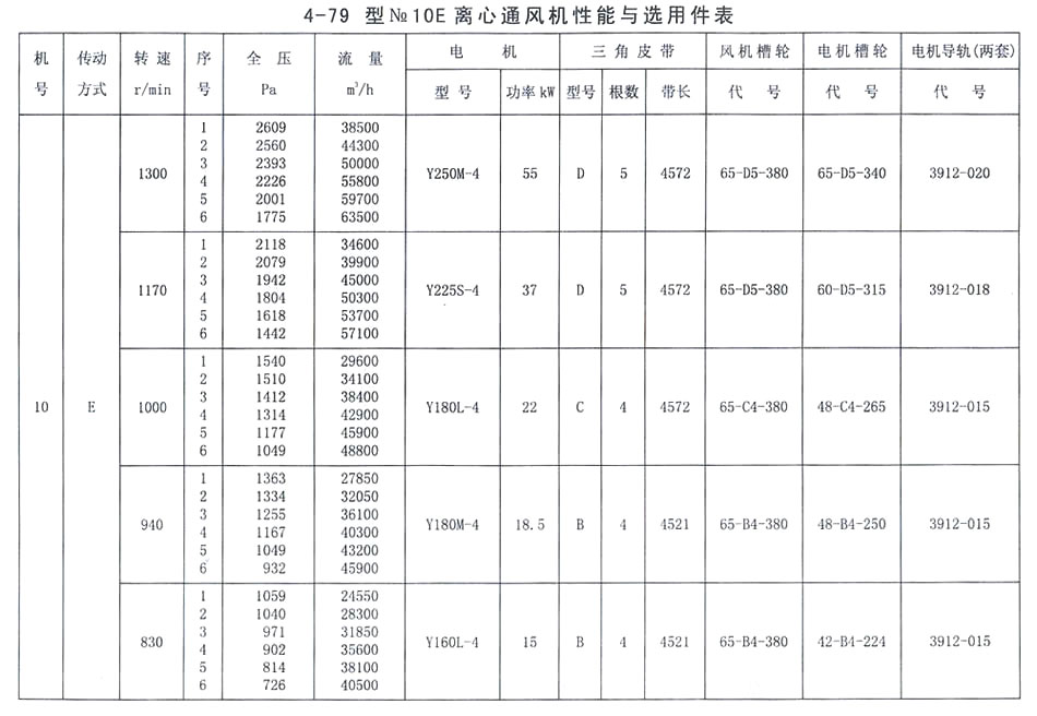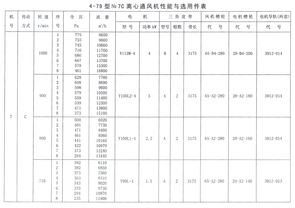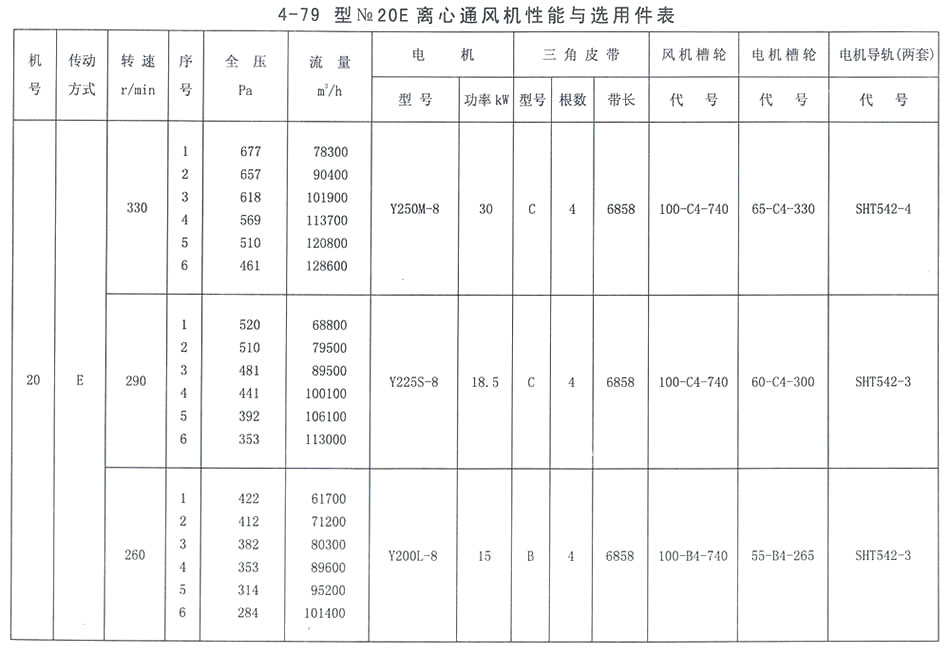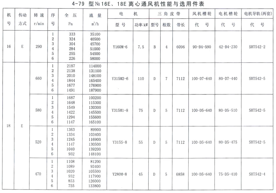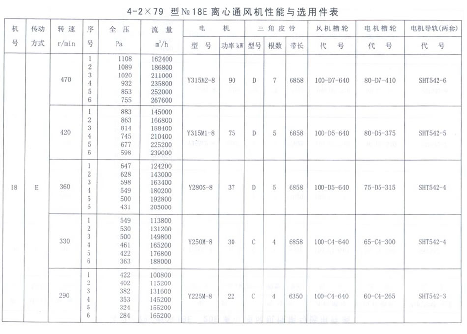 2、風機的出口位置,以機殼的出口角度表示。4-79型風機No3A~6A在出廠時均做成一種型式,使用單位根據要求再安裝成所需要的位置,出風口位置調整范圍0度~225度,間隔是45℃;No7C~8C出風口位置調整范圍0度~180度,間隔22.5度;No10E~20E單進風和雙進風出風口位置均制成固定大三種:0度、90度、180度,不能調整。如果您需要特殊機號、特殊出風口角度等非標準型號,我公司可為您設計和制造,但訂貨時需詳細注明。