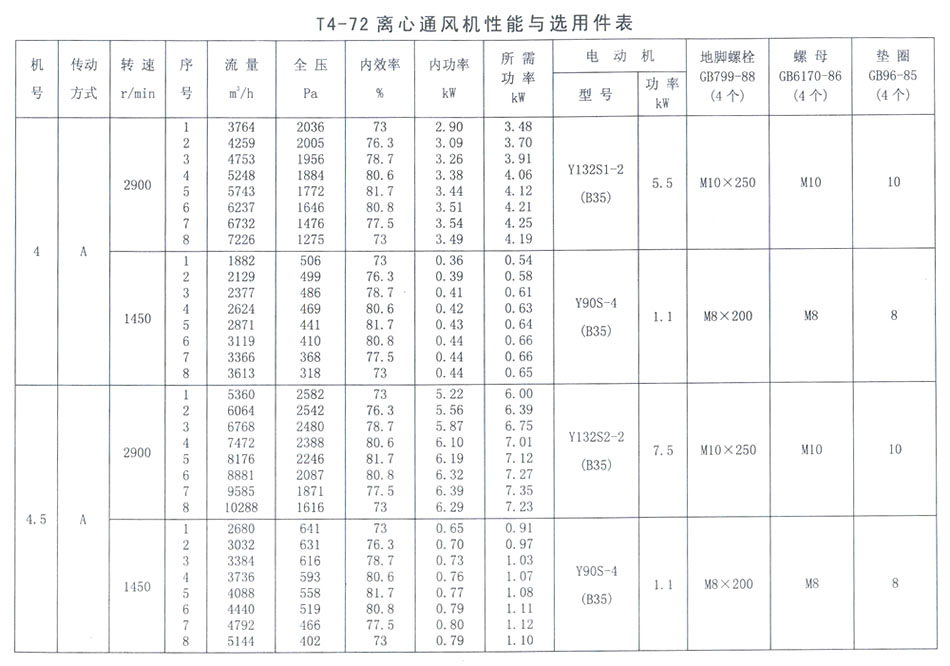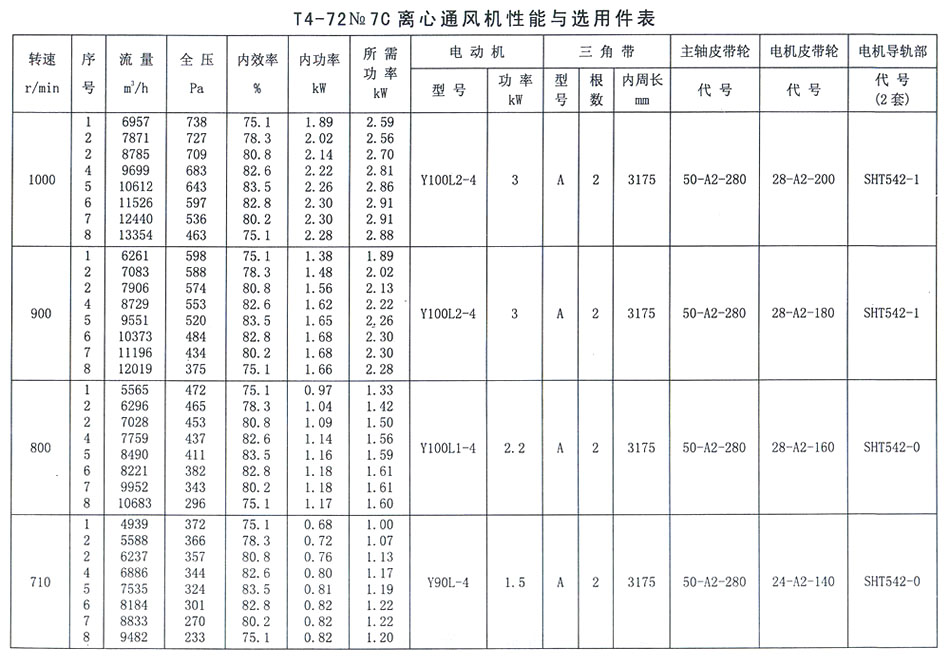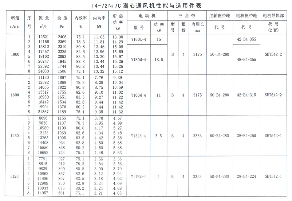T4-72 No 7C離心通風(fēng)機(jī)性能與選用件表