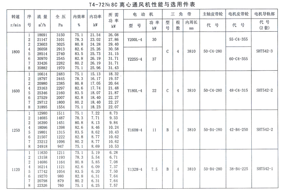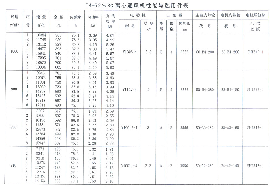T4-72 No 8C離心通風(fēng)機(jī)性能與選用件表