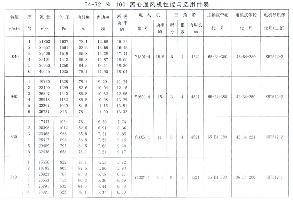 T4-72 No 10C離心通風(fēng)機(jī)性能與選用件表